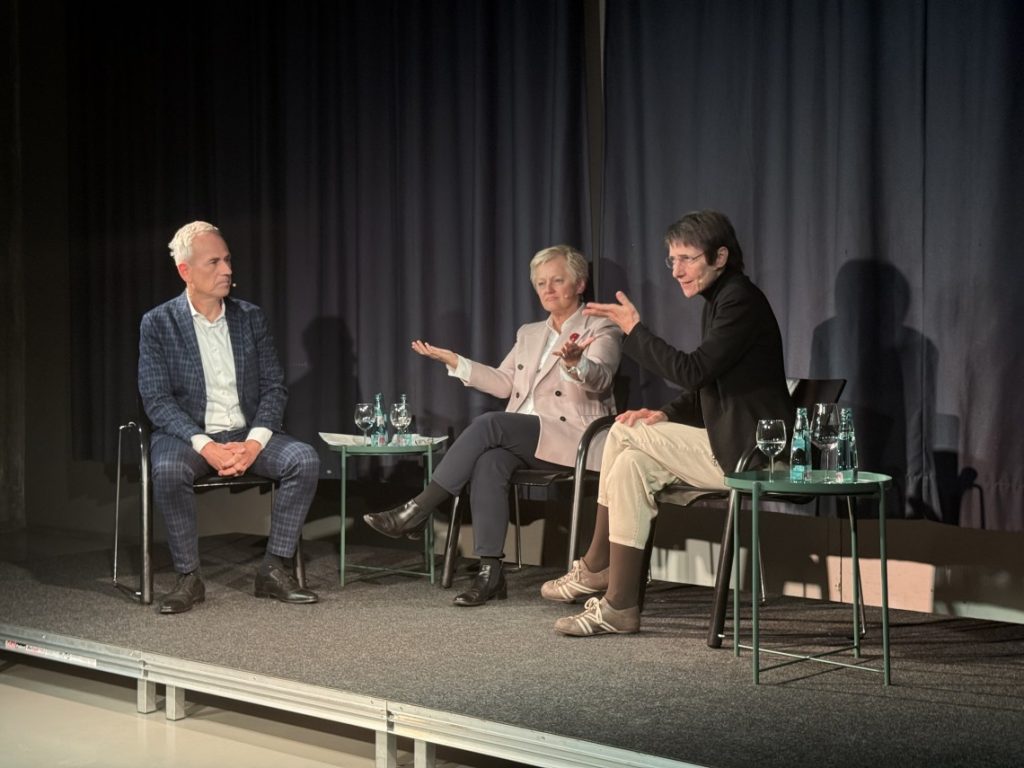 Renate Künast, ehemaliges Mitglied des Abgeordnetenhauses von Berlin und des Deutschen Bundestages sowie Bundesministerin a. D., und Prof. Dr. Petra Gehring, wissenschaftliche Direktorin des Zentrums verantwortungsbewusste Digitalisierung (ZEVEDI) und Mitglied des Rates für Digitalethik der Hessischen Landesregierung, zeigten anhand verschiedener Beispiele, wie ernst die Lage ist – auch, da einfache Lösungen kaum zu finden sind. Bei dem Gespräch unter der Moderation von Andreas Hieke, bekannt als Moderator der hessenschau, wurde zugleich immer wieder deutlich, dass jeder Einzelne durch eine bewusste Auswahl der jeweils genutzten digitalen Angebote seinen Teil zu einer Veränderung hin zum Positiven beitragen kann.